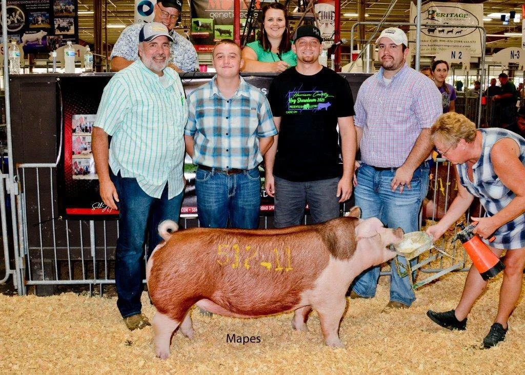 Ruby Red comes from one of the best Hereford litters we have ever seen! Ruby Red is the $10,500 Record Selling Hereford Gilt. She was the Champion Hereford Gilt at the 2021 Ohio State Fair Open Show, Reserve Hereford Gilt at the 2021 Ohio State Fair Junior Show, Reserve Hampshire Gilt at the 2021 Recovery and 5th Overall Hereford Gilt at the 2021 Exposition bred by Jason Corya. She is a littermate to Kipton Edie’s gilt that had a heck of a summer last year.